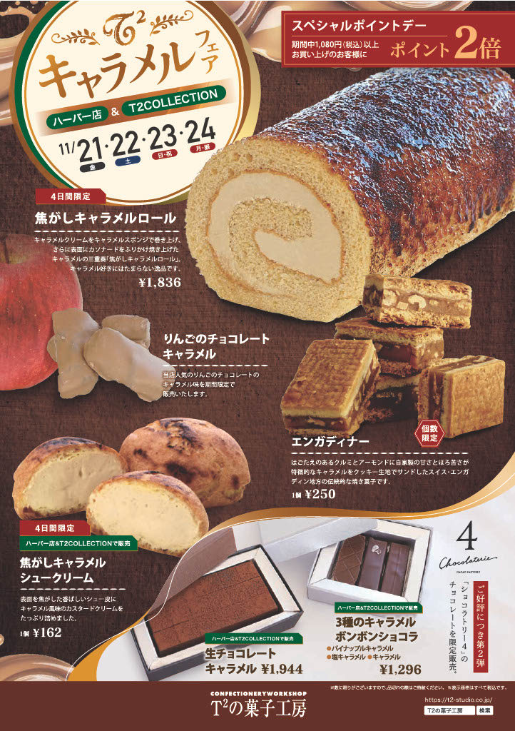 11月21日(金)~24日(月・振)の4日間で、T2の菓子工房で2025キャラメルフェアを開催!